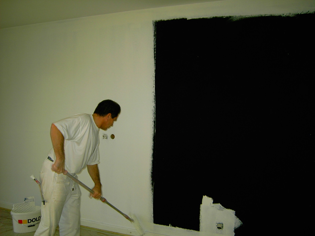 - Die Elektroschildbeschichtung kann nun mit der gewünschten Wandfarbe überstrichen werden, hier zum Beispiel weiss
